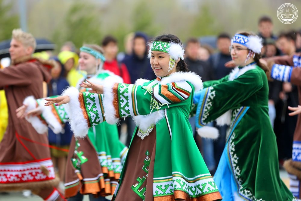 Несмотря на дождь и порывистый ветер, благодаря выступлению творческих коллективов Сургутского государственного университета митинг получился ярким и красочным.
