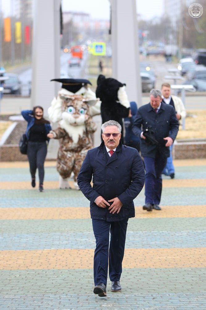 В завершение мероприятия в небо были выпущены белые голуби как символ мира и чистоты. А все студенты во главе с ректором Сергеем Косенком, не нарушая сложившуюся традицию, прошли в университет сквозь символичные врата знаний.