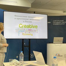 С совместным докладом на тему «Финансовая грамотность и креативная экономика в Югре» выступили Оксана Галюта, кандидат экономических наук, доцент СурГУ, и Анна Задимидченко, преподаватель СурГПУ, отметив, что креативная экономика дает новую жизнь производству, услугам, торговле и сфере развлечений. Она меняет среду, в которой люди хотят жить, работать и учиться, где они думают, изобретают и творят. Потенциал молодого поколения югорчан включает не только компетенции, необходимые для развития креативных индустрий, но и соответствующий уровень финансовой грамотности. Финансово грамотный гражданин способен генерировать новые идеи, которые в будущем принесут не только доходы, но и сохранят личную идентичность в эпоху глобализации.