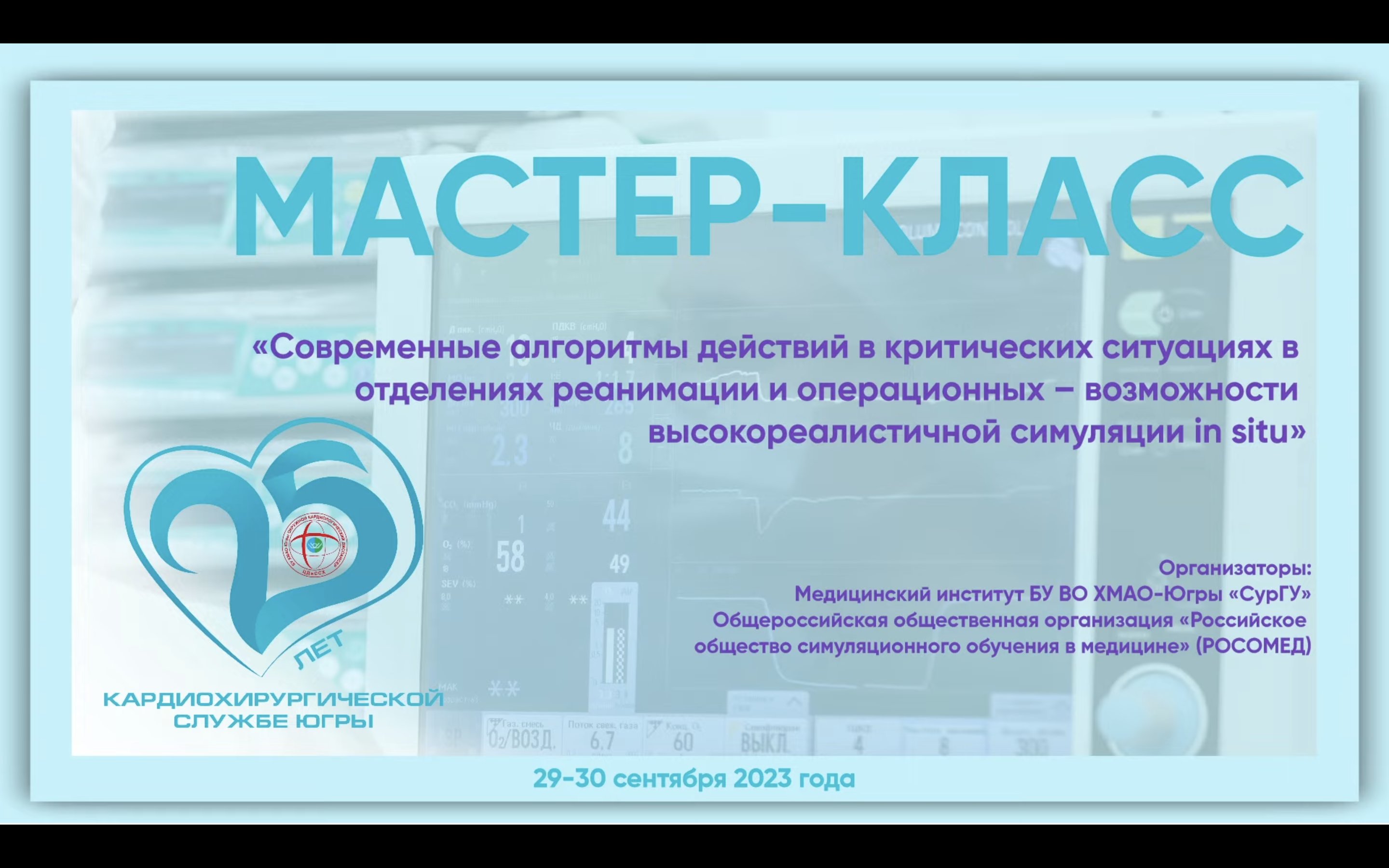 Впервые в нашем округе на клинической базе Медицинского института Сургутского госуниверситета в БУ «Окружной кардиологический диспансер "Центр диагностики и сердечно-сосудистой хирургии"» в условиях отделения анестезиологии и реанимации с палатами интенсивной терапии № 1 в смешанном формате проводится двухдневный мастер-класс высокой реалистичности «Современные алгоритмы действий в критических ситуациях в отделениях реанимации и операционных – возможности высокореалистичной симуляции in situ». Организаторами данного мероприятия выступили Медицинский институт СурГУ и «Общероссийская общественная организация "Российское общество симуляционного обучения в медицине"» (РОСОМЕД).