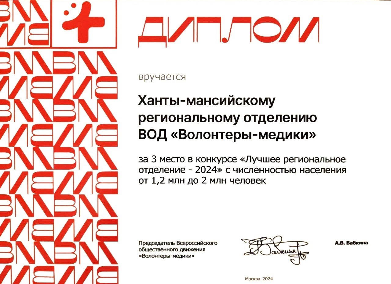 «Я представляла наш округ как заместитель регионального координатора Ханты-Мансийского отделения Всероссийского общественного движения "Волонтеры-медики". Диплом за 3-е место в конкурсе нашему отделению мне вручил Министр здравоохранения РФ Михаил Альбертович Мурашко. Это заслуга всех волонтеров автономного округа, неравнодушных, смелых, готовых помогать всем, кто нуждается в этом. В 2024 году волонтерами-медиками регионального отделения при поддержке медицинских организаций и Департамента здравоохранения Югры проведено 724 мероприятия, направленных на профилактику заболеваний, пропаганду здорового образа жизни, популяризацию медицинского добровольчества среди школьников и молодежи, популяризацию кадрового донорства. В частности, обучение первой помощи, психологической помощи населению и, конечно, помощь в медицинских организациях. В 2024 году волонтеры-медики СурГУ внесли значительный вклад в укрепление здоровья югорчан, став участниками реализации проекта "Всероссийская программа по популяризации диспансеризации и здорового образа жизни"», – подчеркнула заместитель регионального координатора Ханты-Мансийского отделения Всероссийского общественного движения «Волонтеры-медики» по городу Сургут Мария Гюльмагомедова.