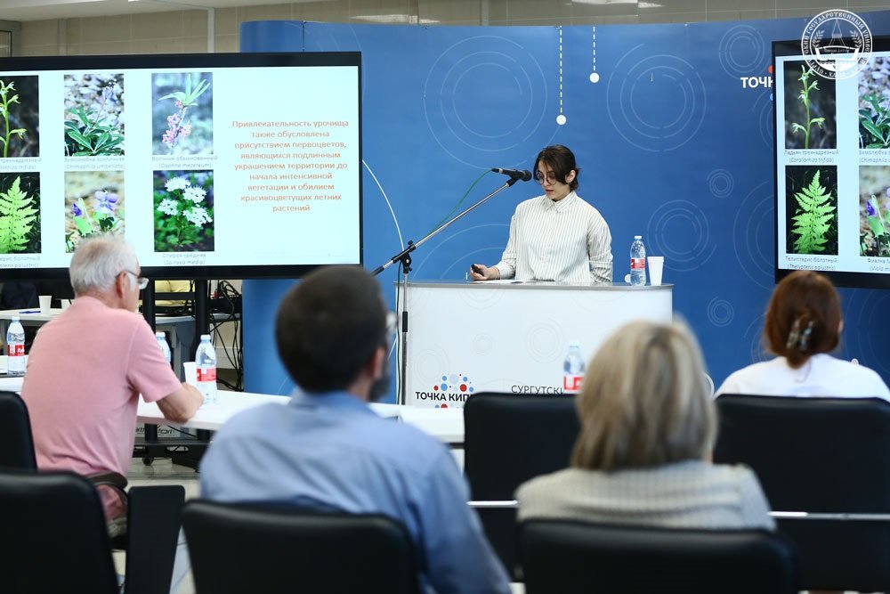 Доцент кафедры биологии и биотехнологии СурГУ Зоя Анатольевна Самойленко представила находки редких видов растений, обнаруженных в Кондинском и Сургутском районах. Многие из этих растений были найдены в том числе и на особо охраняемых природных территориях.