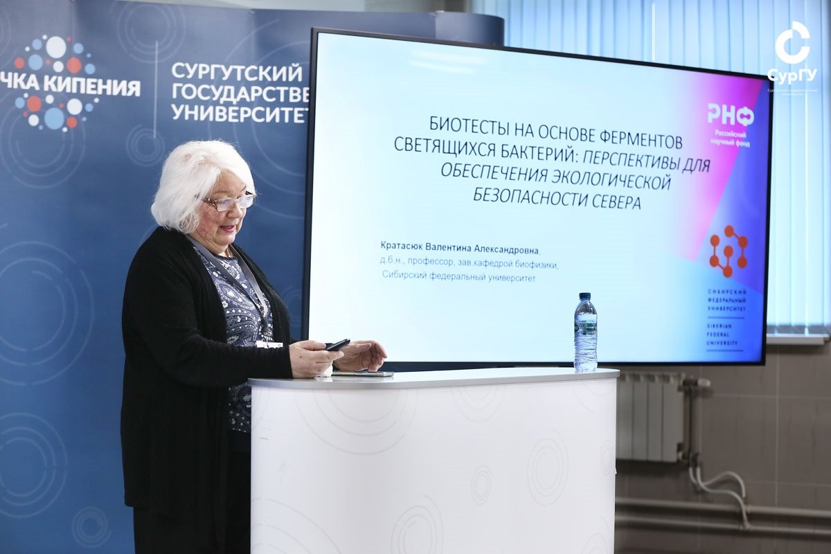 Первой в серии пленарных докладов с интересной темой «Биотесты на основе ферментов светящихся бактерий: перспективы для обеспечения экологической безопасности Севера» выступила доктор биологических наук, профессор, заведующий кафедрой биофизики Сибирского федерального университета Валентина Кратасюк. По словам спикера, в настоящее время окружающая среда, здравоохранение, пищевая промышленность нуждаются в высокочувствительных методах обнаружения токсичности.