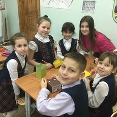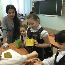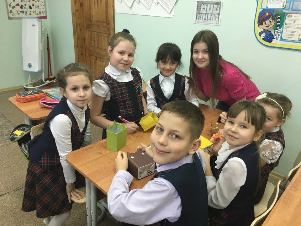 При прохождении каждой станции школьники получали детали для будущей поделки, а затем из использованных коробок от молока и макулатуры ребята соорудили разные полезные вещи – подставки для карандашей и цветочные горшки.