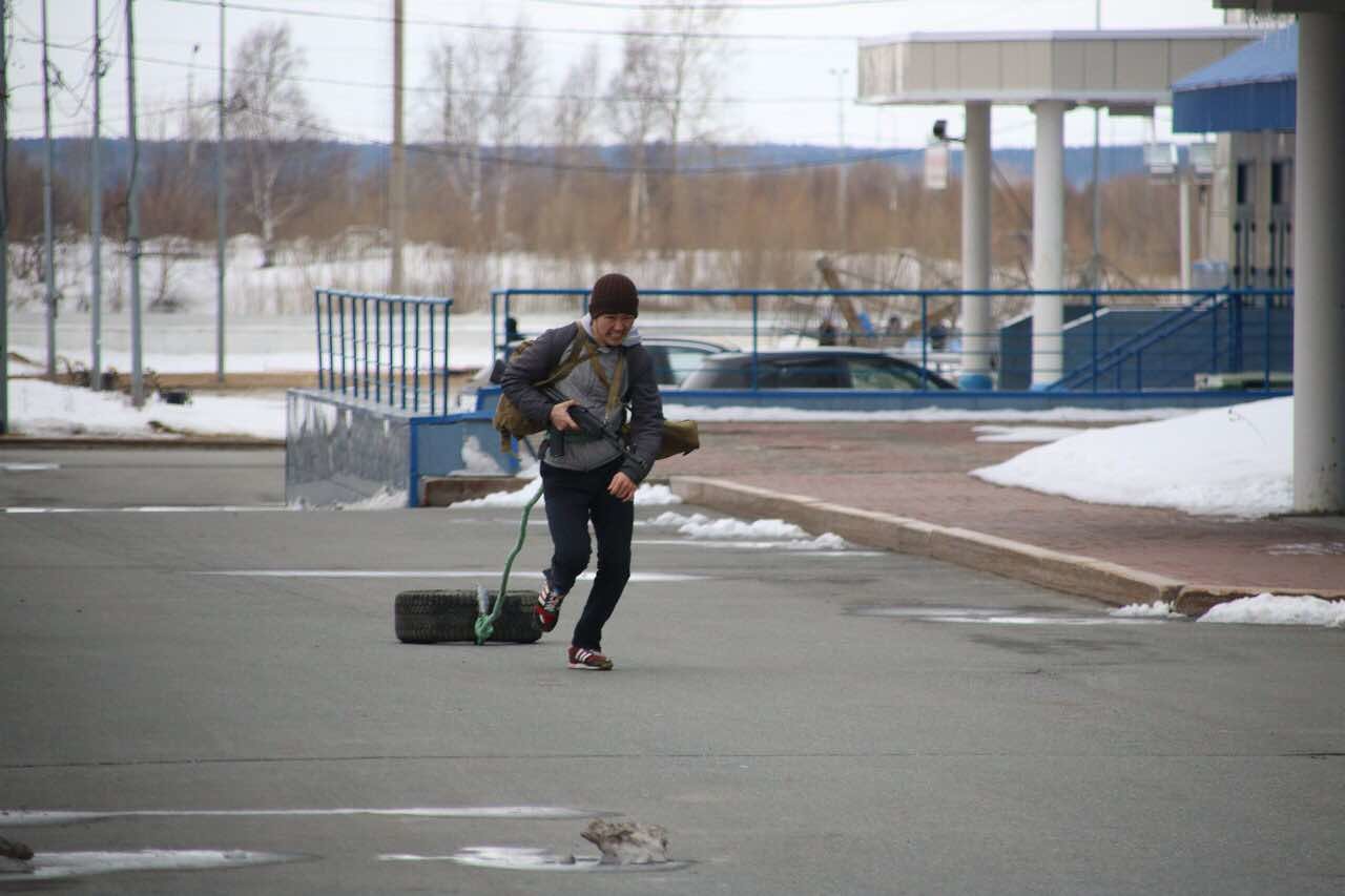 Один из последних этапов - разжигание костра. Для этого дана 1 спичка и подручные материалы. Сложно! Если удалось зажечь костер - перегорает нитка и раздается сигнальный выстрел, который означает, что участник команды может стартовать с "эстафетной палочкой", отягощенной большим колесом. Сколько силы нужно приложить! Ведь это решающий шаг, и стоп - время останавливается!