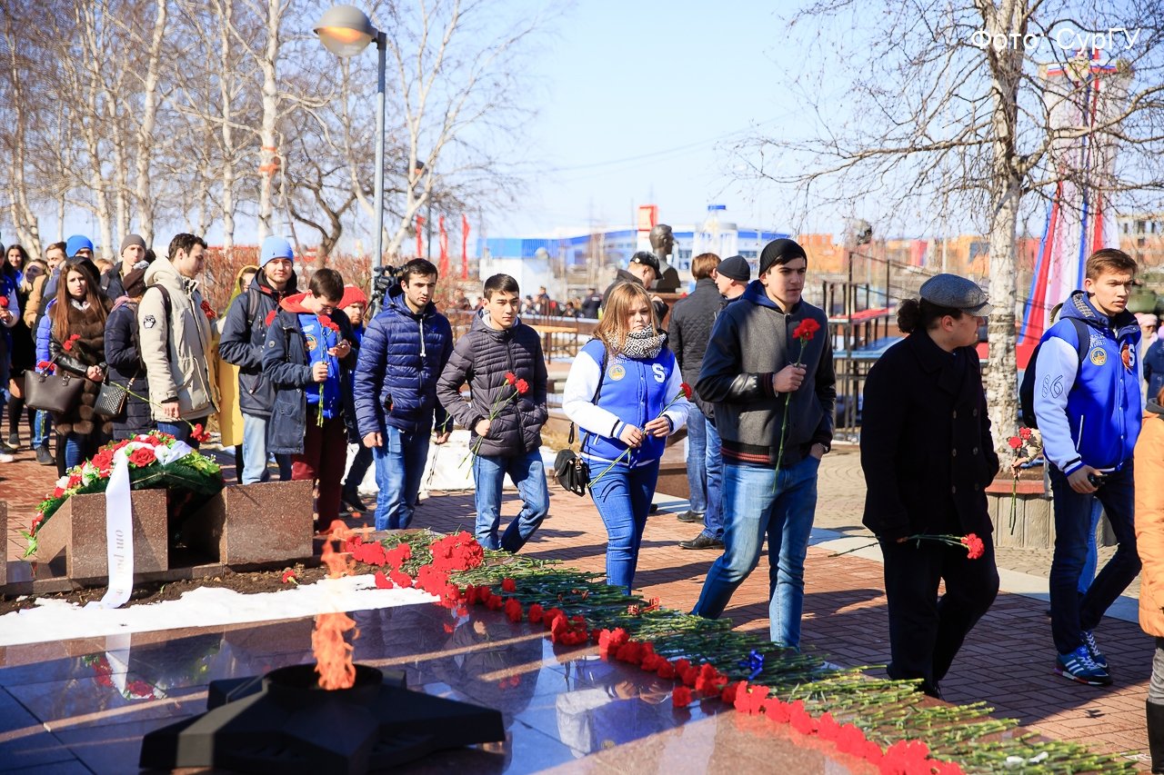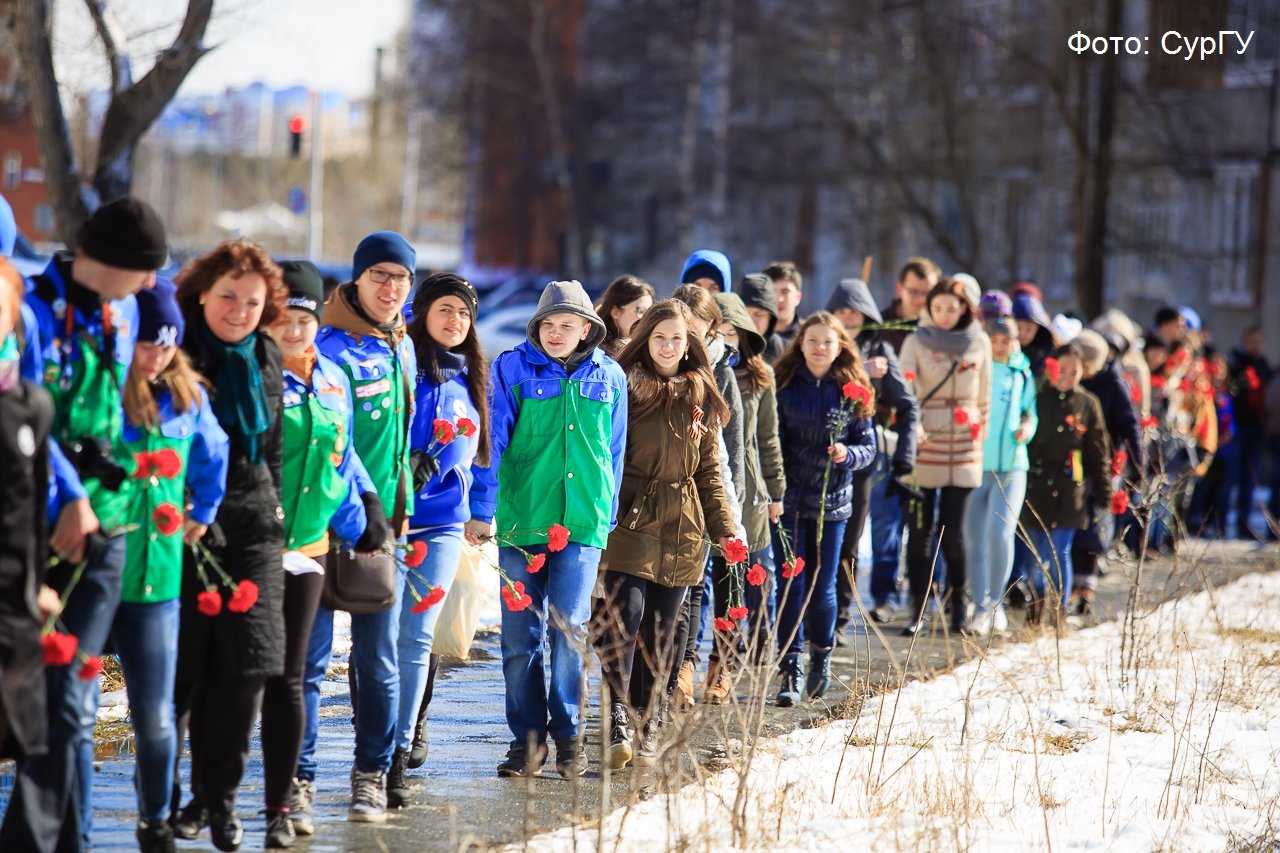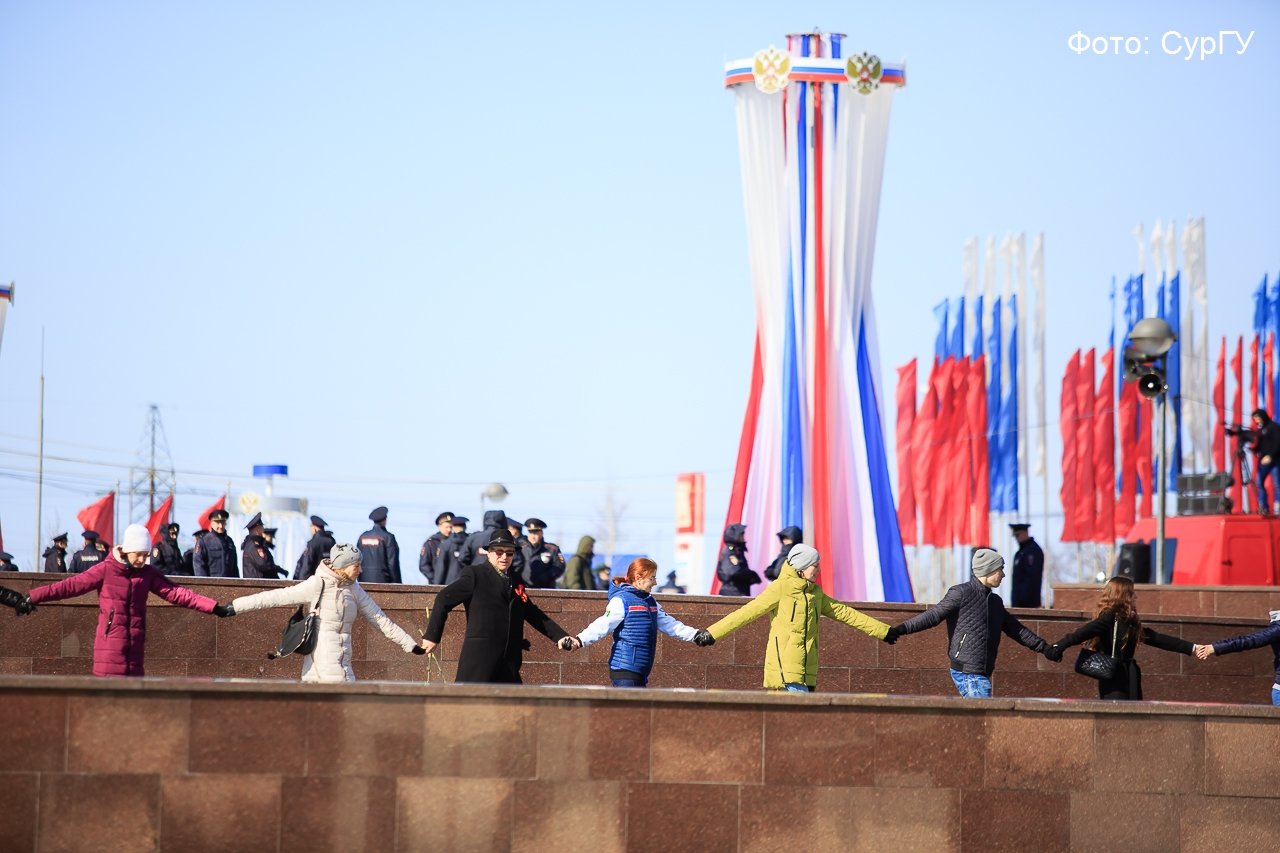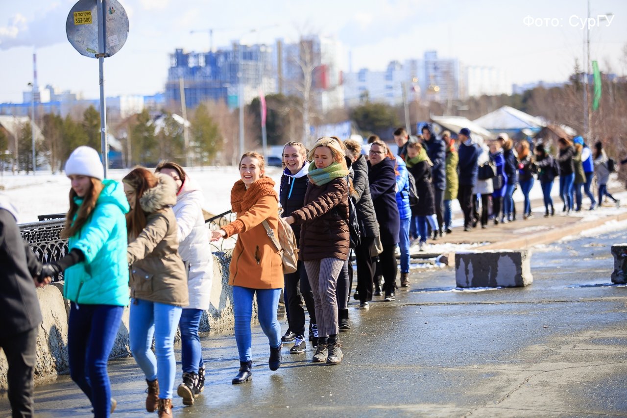 Именно с Живой цепи памяти, ставшей данью сургутянам, погибших на фронтах Великой Отечественной войны, начали студенты День Великой Победы. Эта акция родилась в стенах университета, ее от всей души поддержали жители Сургута всех возрастов. На протяжении живой цепи, выстроившейся от главного корпуса СурГУ, они присоединялись к студентам и преподавателям. По словам организаторов акции — отдела по внеучебной работе — в этом году в ней приняли участие более 1000 человек.