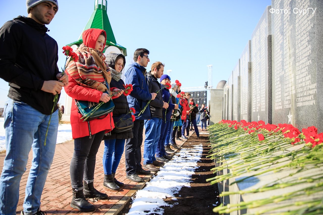 «1240 гвоздик было передано по цепи и возложено к Мемориалу Славы нашими студентами, преподавателями и жителями города. Стоишь в цепи, передаешь цветы и осознаешь, сколько сургутян погибло во времена Великой Отечественной войны. Просто кровь стынет в жилах! Вечная память всем павшим на полях сражений. Спасибо, за мирное небо над головой!»