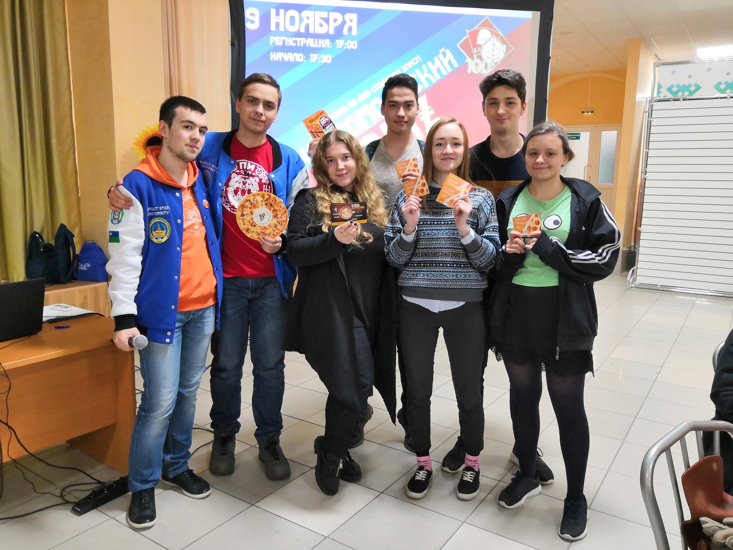 На Quiz собрались семь команд, из них большую часть составляли студенты СурГУ, но также в интеллектуальном состязании приняли участие команда «Фаталити», в которой играют школьники из гимназии Салманова, и команда «Теория невероятности», ее игроки умело совмещают интеллектуальный спорт с преподаванием в Институте государства и права СурГУ!