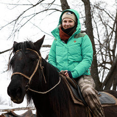 «Сегодня первая точка нашей экспедиции. Национальный парк «Башкирия». Мы побывали на конюшне, покатались на лошадях. Затем все отправились на смотровую площадку «Ласточкино гнездо». Именно тут видно соединение реки Белой и Нугушского водохранилища. Водохранилище замерзшее, а берега изо льда бирюзового цвета, волшебно! Сыро, мокро и лужи. Вокруг — весна…».