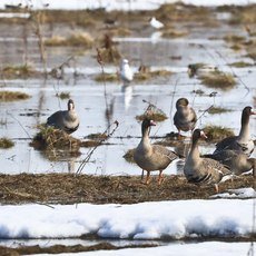 Много чибисов летало (маленькая белая птица — прим. авт.), стаи гусей, журавли. Слышали, как токуют глухари, но увидеть их, к сожалению, не удалось.