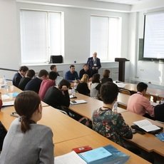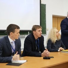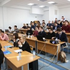 В аудитории собрались студенты-докладчики, гости, студенты СурГУ, врио директора ПИ Дмитрий Федоров, обратившийся с приветственным словом, а также представители оргкомитета под председательством Фёдора Иванова.