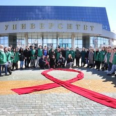 На площади перед главным корпусом СурГУ в рамках Всероссийской акции по борьбе с ВИЧ-инфекцией «Стоп ВИЧ/СПИД», приуроченной ко Всемирному дню памяти умерших от СПИДа, прошел традиционный флешмоб. Студенты выстроились в форме международного официального символа борьбы со СПИДом, подняв вверх ленточку красного цвета.