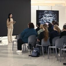 В атриуме 29 января прошли просмотр и обсуждение короткометражного фильма «Туфельки» (2012). Через призму вещей, безо всяких диалогов, не показывая лиц актеров, лента рассказывает историю жизни обычной еврейской девушки – одной из многих, погибших в немецких лагерях смерти. Сразу же после просмотра фильма состоялся диалог о важном «Час истории. Трагедия, которая не должна повториться». В качестве эксперта выступил доцент кафедры политологии СурГУ Василий Мархинин. Его доклад был посвящен блокаде Ленинграда. Знать об этом важно и нужно, считает эксперт. Василий Васильевич проанализировал подготовку и проведение Ленинградско-Новгородской операции 14 января – 1 марта 1944 года, а также быт жителей блокадного Ленинграда. В частности, были представлены фотографии книг научного, прикладного и досугового характера, издававшиеся в городе в то время.