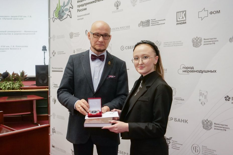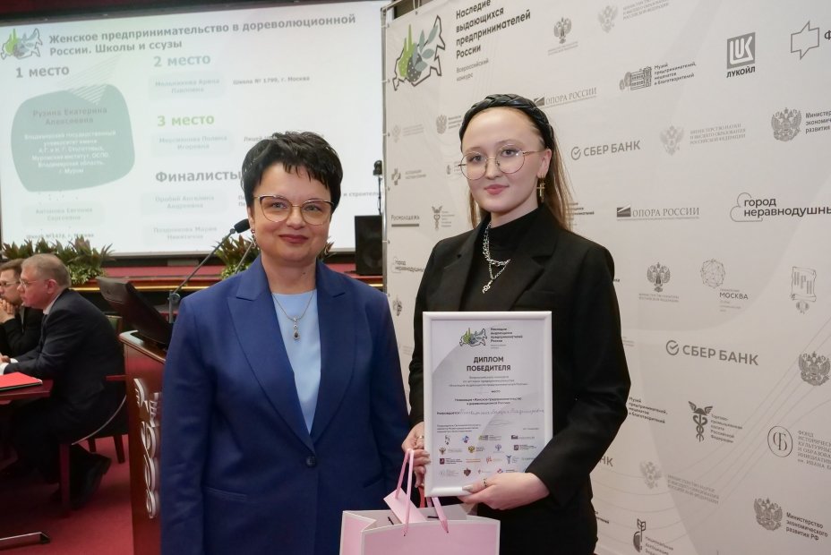 - в номинации «Женское предпринимательство в дореволюционной России»: 1-е место у магистранта и преподавателя СПО (г. Ноябрьск) Валерии Просвиркиной. Валерия Владимировна удостоена медали А. И. Абрикосова по решению потомка этой династии;