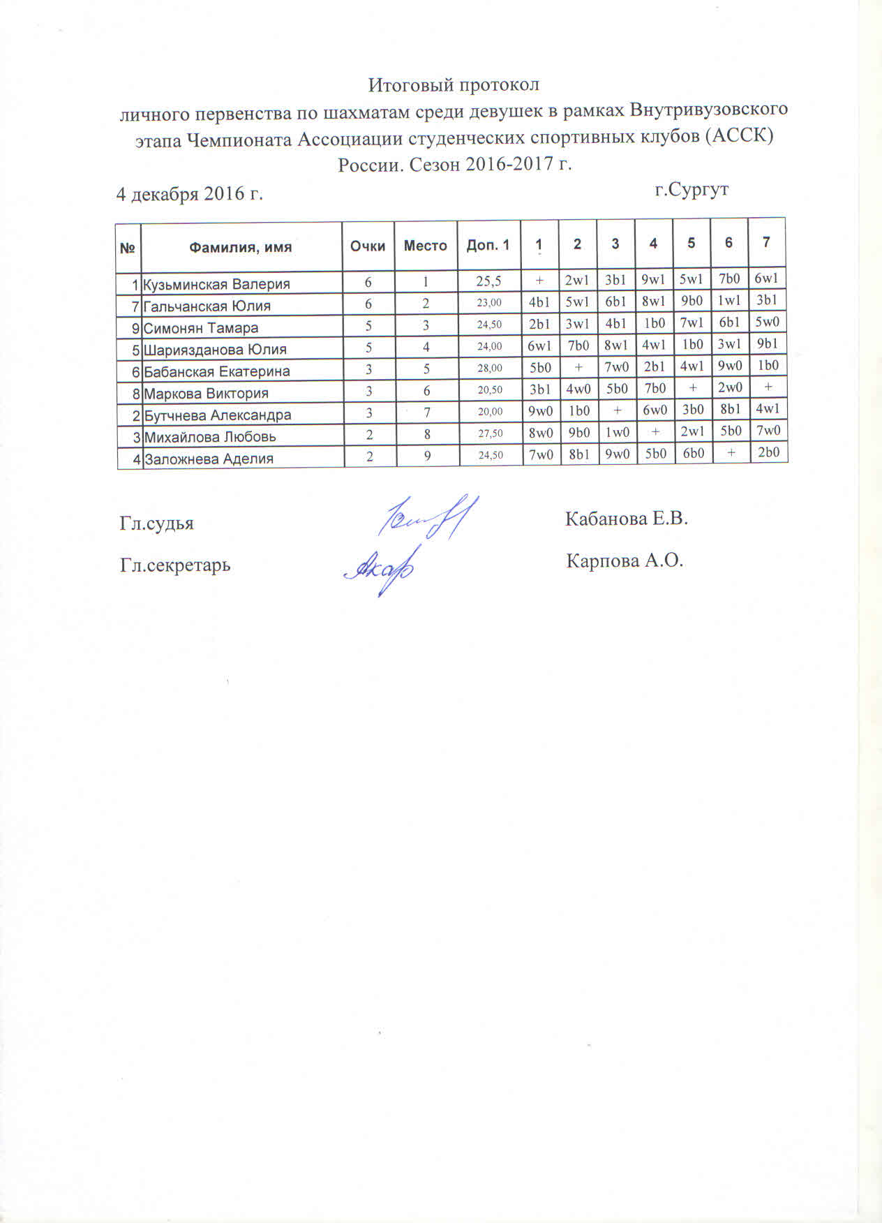 СурГУ: Результаты Внутривузовского чемпионата АССК